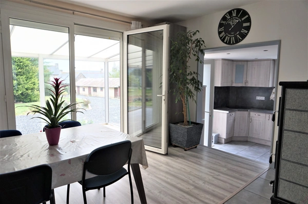 Votre conseillère Noovimo Sandrine Hinault 0678220258 shinault@noovimo.fr vous propose: En exclusivité, Située dans le bourg de Mousteru,à 5 mn de Guingamp et accés RN 12, au calme, proche école, maison de 80m2, rénovée, disposant d'une vie de plain pied. Ce bien s'ouvre sur une cuisine aménagée et équipée récente, un séjour de 26 m2, lumineux et disposant d'un poèle à bois de 2019. Du séjour , vous accédez à une véranda d'environ 22m2. Un couloir dessert 2 chambres , une salle de bain et un WC séparé. Une arrière cuisine et une pièce supplémentaire à l'étage complète cet ensemble. Coté jardin, vous profiterez un terrain de 2190 m2, joliment arboré, d'un verger et d'un espace potager. Des dépendances d'environ 56m2 et faisant office de bûcher et atelier. Idéal première acquisition ! Honoraires : 4.8 % TTC de 142 500EUR ( prix de vente honoraires exclus). Soit 149 340 EUR honoraires inclus. Honoraires à la charge de l'acquéreur. Nos honoraires sont consultables sur : www.noovimo.fr. Votre agent indépendant Noovimo inscrit au RSAC de St Brieuc: numéro 842 067 480. 1 - Annonce rédigée et publiée par un Agent Mandataire -