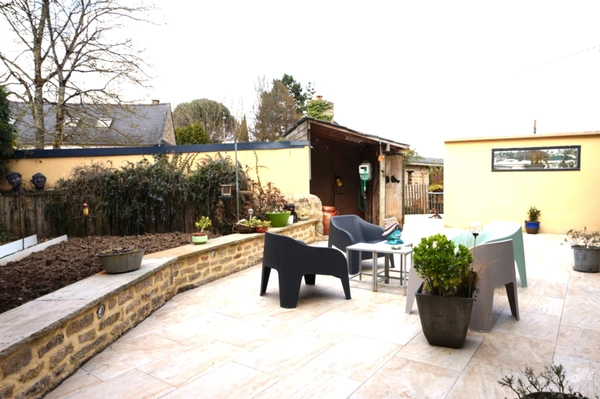 Votre conseillère Noovimo Sandrine Hinault 0678220258 shinault@noovimo.fr vous propose: Située sur la commune de Ploumagoar, proche commodités , axe RN12 et gare LGV, grande maison en pierres bénéficiant d'une extention de 2018. Ce bien s'ouvre sur une entrée avec placards, une cuisine aménagée et équipée ouvrant sur une salle à manger avec accès direct sur une première terrasse sans vis à vis et parfaitement exposée. Un salon d'environ 31m2, avec cheminée, donnant accès à la terrasse couverte et une terrasse plein air avec son coin barbecue./Plancha. Une grande pièce faisant office de salle de jeux/bureau, un espace buanderie , une salle d'eau récente, un WC séparé, ainsi que trois grandes chambres complètent le rez de chaussée.