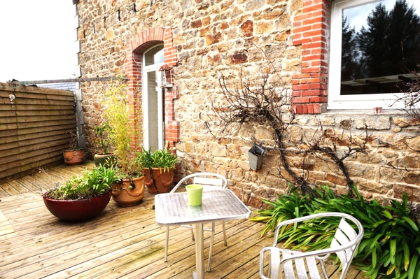 A l'étage, vous profiterez d'un salon avec cheminée, points d'eau ( possibilité de créer une cuisine ouverte sur le salon). Un couloir dessert 4 chambres , une salle de bain, un wc ainsi qu'un grand grenier d'environ 30m2,à finir d'aménager . Coté jardin: un terrain de 1085 m2, joliment aménagé et clos de murs avec portail électrique ,de nombreuses annexes et dépendances en pierres ( four à pain) carport et garage. Maison de charme, disposant de beaux volumes, idéale pour une grande famille ou activité famille d'accueil. Tout à l'égout conforme, chauffage gaz de ville. Honoraires : 3,8% TTC de 450 000 EUR ( prix de vente honoraires exclus). Soit 467 100 EUR honoraires inclus. Honoraires à la charge de l'acquéreur. Nos honoraires sont consultables sur : www.noovimo.fr. Votre agent indépendant Noovimo inscrit au RSAC de St Brieuc: numéro 842 067 480.